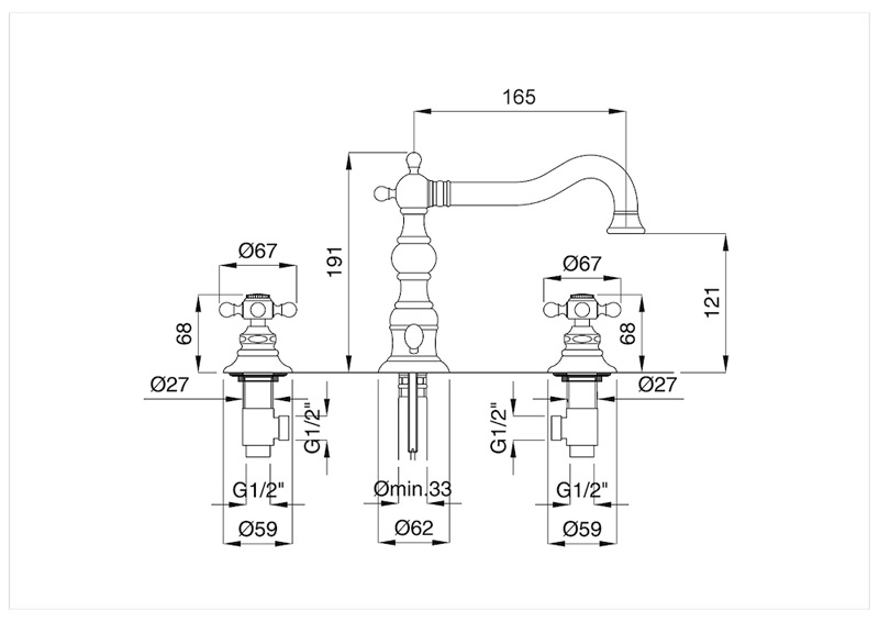 Bugnatese Arcadia 8312 - álló 3 üléses mosdócsaptelep leeresztővelBugnatese Arcadia 8312 - álló 3 üléses mosdócsaptelep leeresztővel