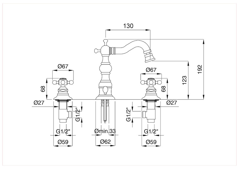 Bugnatese Arcadia 8325 - álló 3 üléses bidet csaptelep leeresztővel