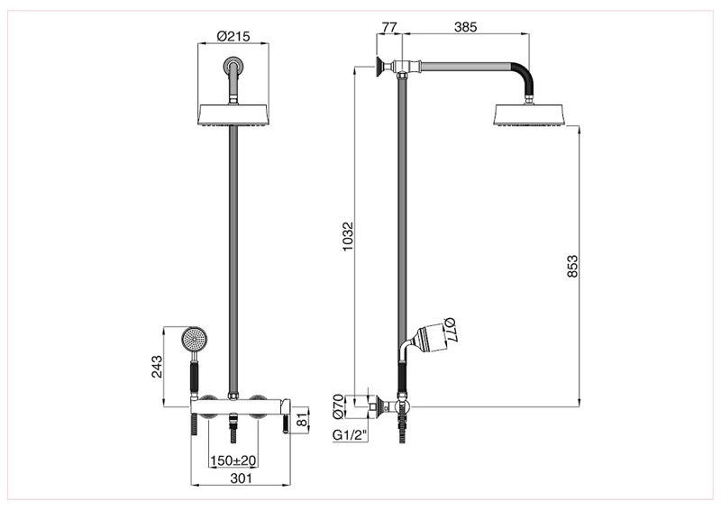 Bugnatesa Athena 8542 - esőztető rendszer fej- és kézizuhannyal