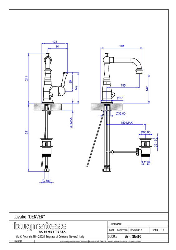 Bugnatese Denver 6413 - mosdócsaptelep leeresztővelBugnatese Denver 6413 - mosdócsaptelep leeresztővel