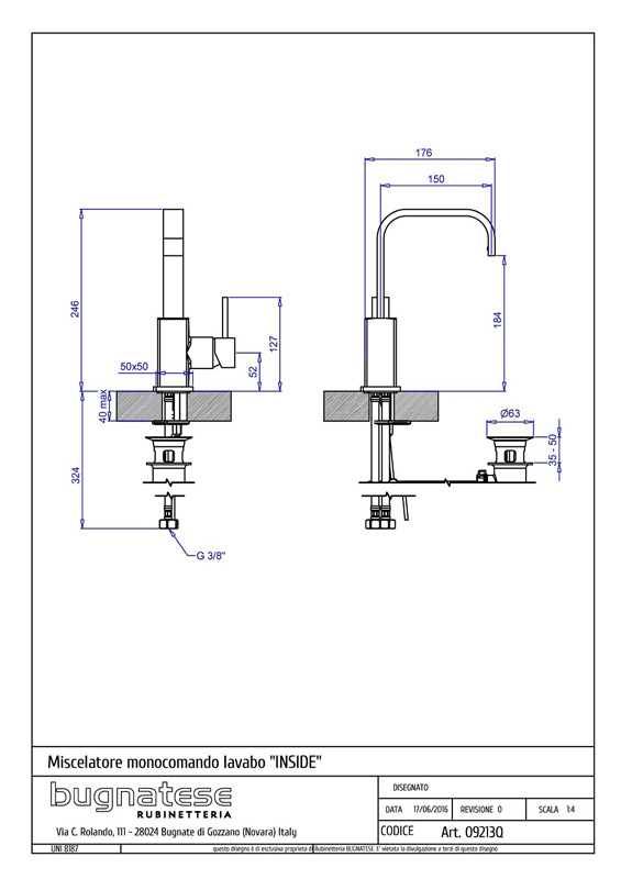 Bugnatese Inside 9213Q - mosdócsaptelep leeresztővel tört kifolyóvalBugnatese Inside 9213Q - mosdócsaptelep leeresztővel tört kifolyóval
