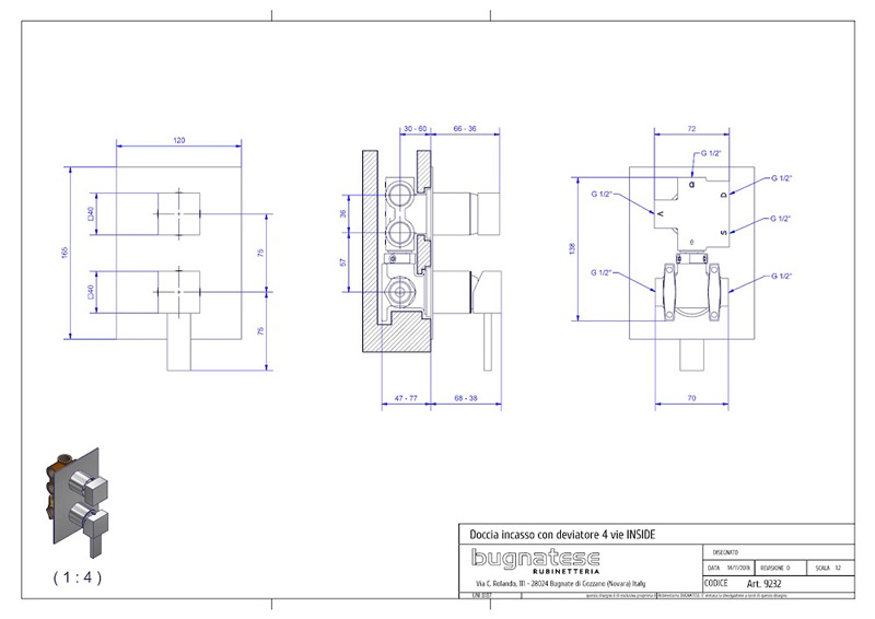 Bugnatese Inside 9232 -fal alatti 4 állású zuhanycsaptelep