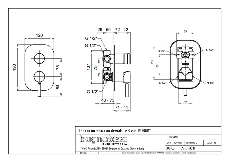 Bugnatese Kobuk 2231 - fal alatti 3 állású zuhanycsaptelep