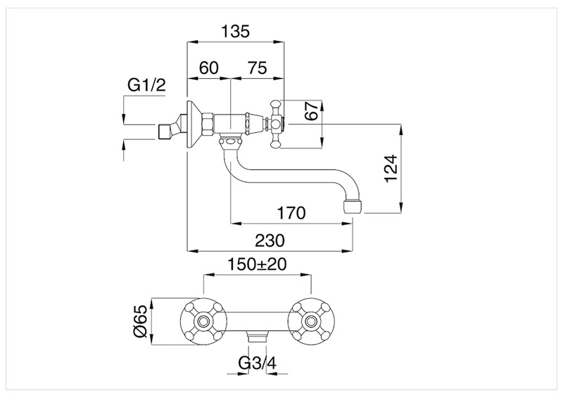 Bugnatese LADY 952 - Fali mosogatócsaptelep leeresztő nélkülBugnatese LADY 952 - Fali mosogatócsaptelep leeresztő nélkül