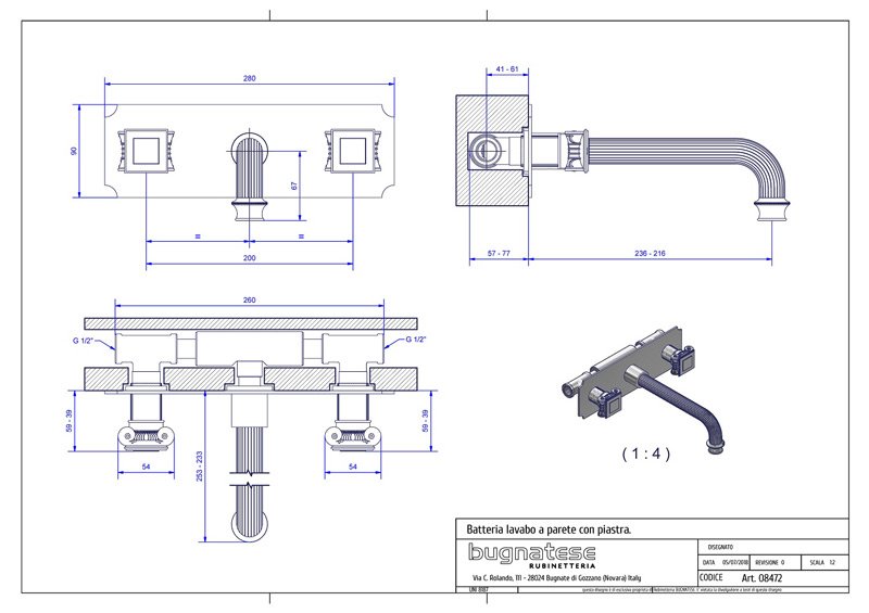 Bugnatese Olympia 8472 - fali mosdócsaptelepBugnatese Olympia 8472 - fali mosdócsaptelep