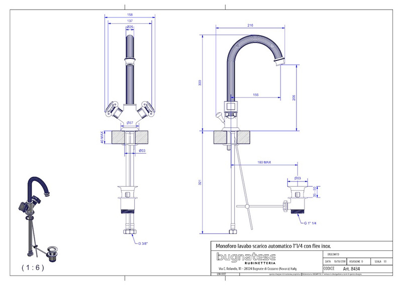 Bugnatese Olympia 8434 - mosdócsaptelep leeresztővel