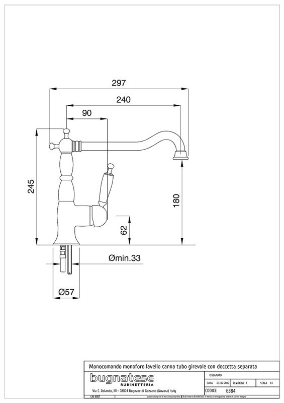 Bugnatese OXFORD 6382 - Álló mosogatócsaptelep leeresztő nélkülBugnatese OXFORD 6382 - Álló mosogatócsaptelep leeresztő nélkül