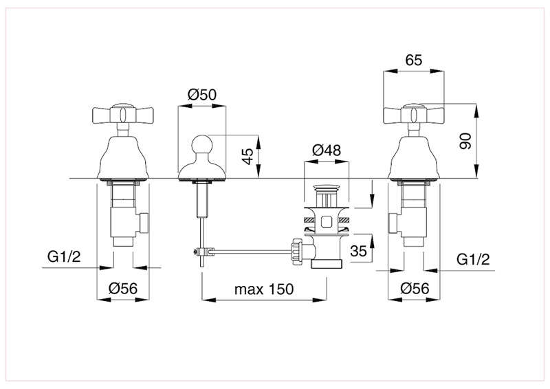 Bugnatese Princeton 822 - álló 3 üléses bidet csaptelep kifolyó nélkül