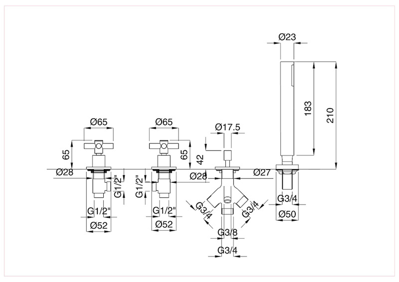 Bugnatese Rodos 7382 - peremre szerelt 4 üléses kádcsaptelepBugnatese Rodos 7382 - peremre szerelt 4 üléses kádcsaptelep