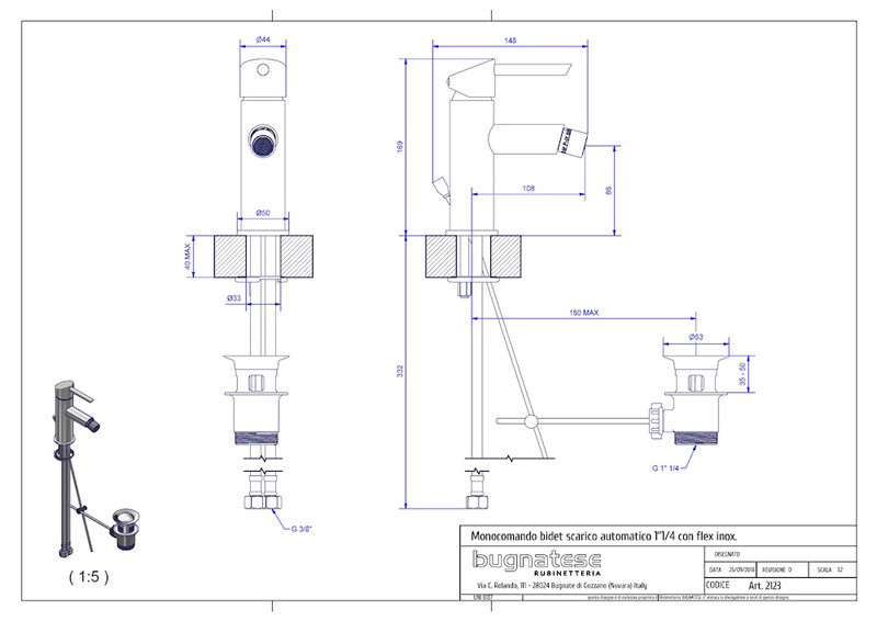 Bugnatese Smart 2123 - bidet csaptelep leeresztővel