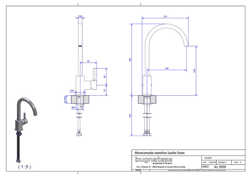 Bugnatese STONE 9399 - Álló mosogatócsaptelep leeresztő nélkülBugnatese STONE 9399 - Álló mosogatócsaptelep leeresztő nélkül