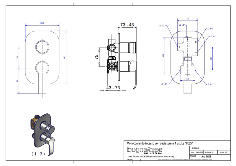 Bugnatese Tess 9632 - fal alatti 4 állású zuhanycsaptelepBugnatese Tess 9632 - fal alatti 4 állású zuhanycsaptelep