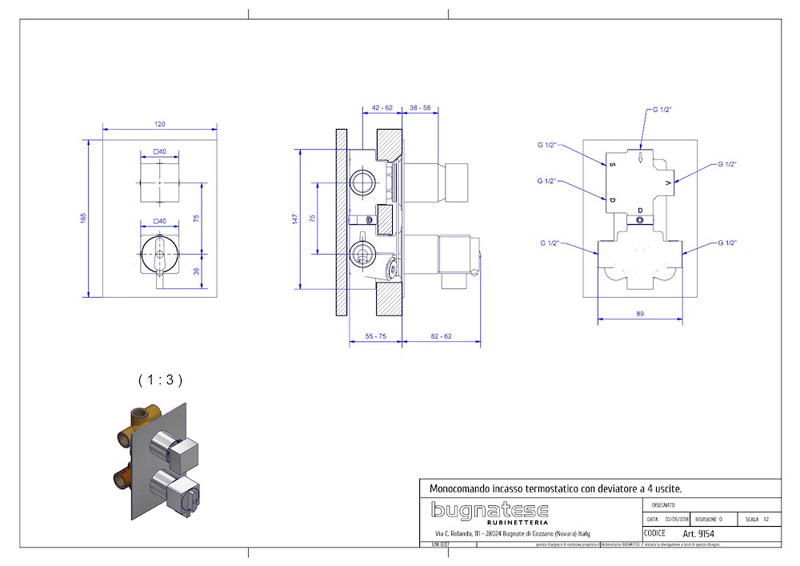 Bugnatese Tetris 9154 - termosztátos fal alatti 4 állású zuhanycsaptelep