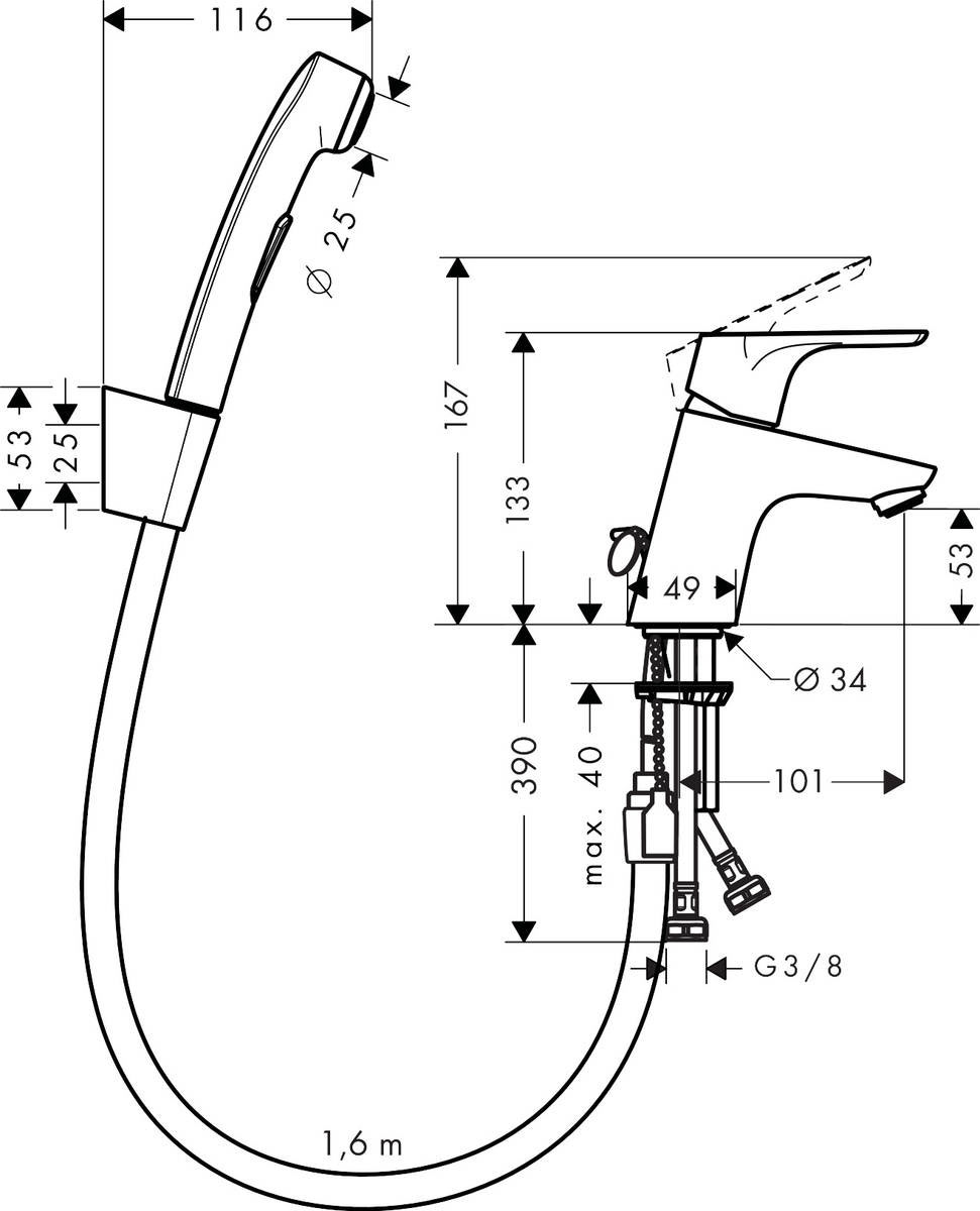 Hansgrohe Focus Egykaros mosdócsaptelep 70 bidette kézizuhannyal és 160 cm zuhanycsővel