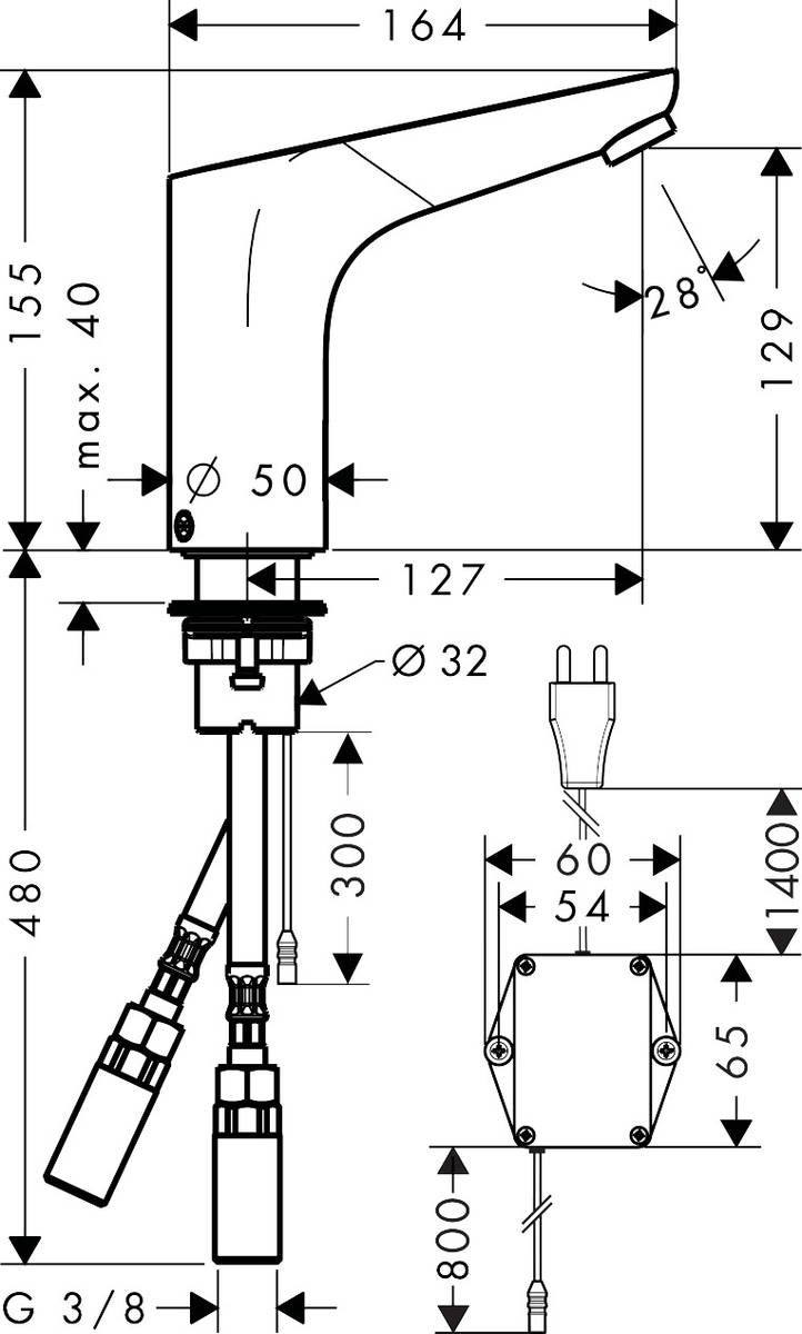 Hansgrohe Focus Elektronikus mosdócsaptelep hőmérséklet szabályozás nélkül, 230 V-os hálózati csatlakozással