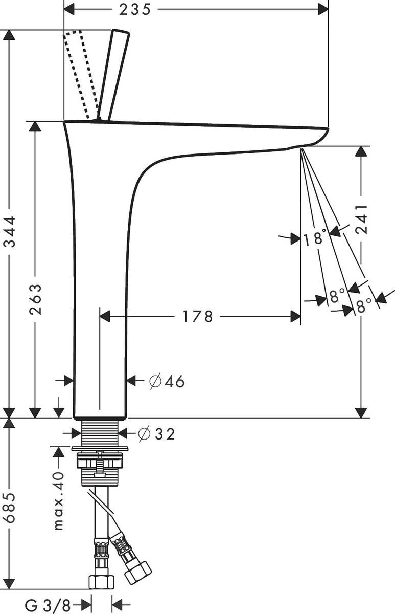 átfolyási mennyiség 3 bar nyomás esetén: 5 l/perc