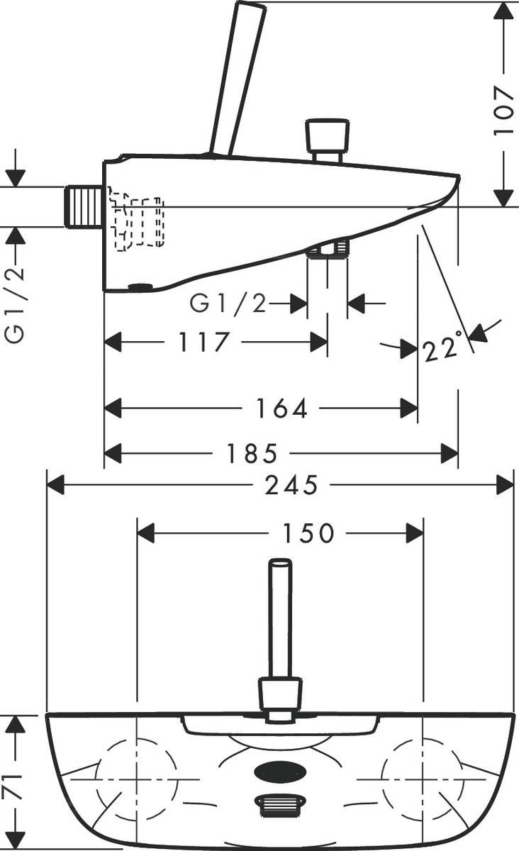 Hansgrohe PuraVida Egykaros kádcsaptelep falsíkon kívüli szereléshez