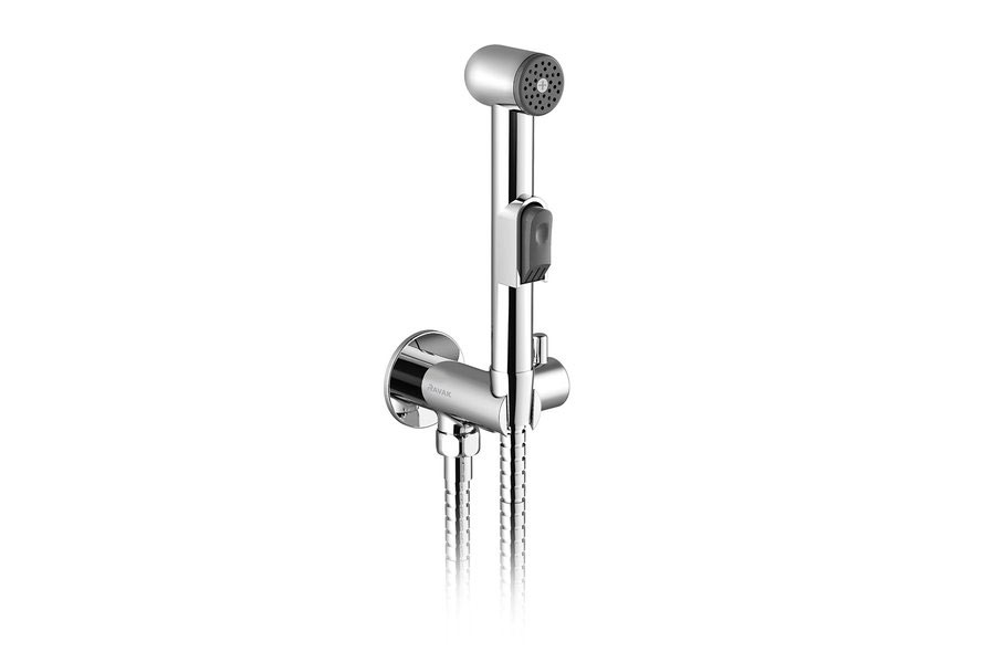Változat: fali szerelvény bidézuhannyal. Tartalmaz egy nyitó és zárószelepet a víz megnyitásához, rajta egy rögzítési hellyel a zuhanyfej számára, egy tömlőcsatlakozót, tömlőt, és egy gombos bidézuhanyt