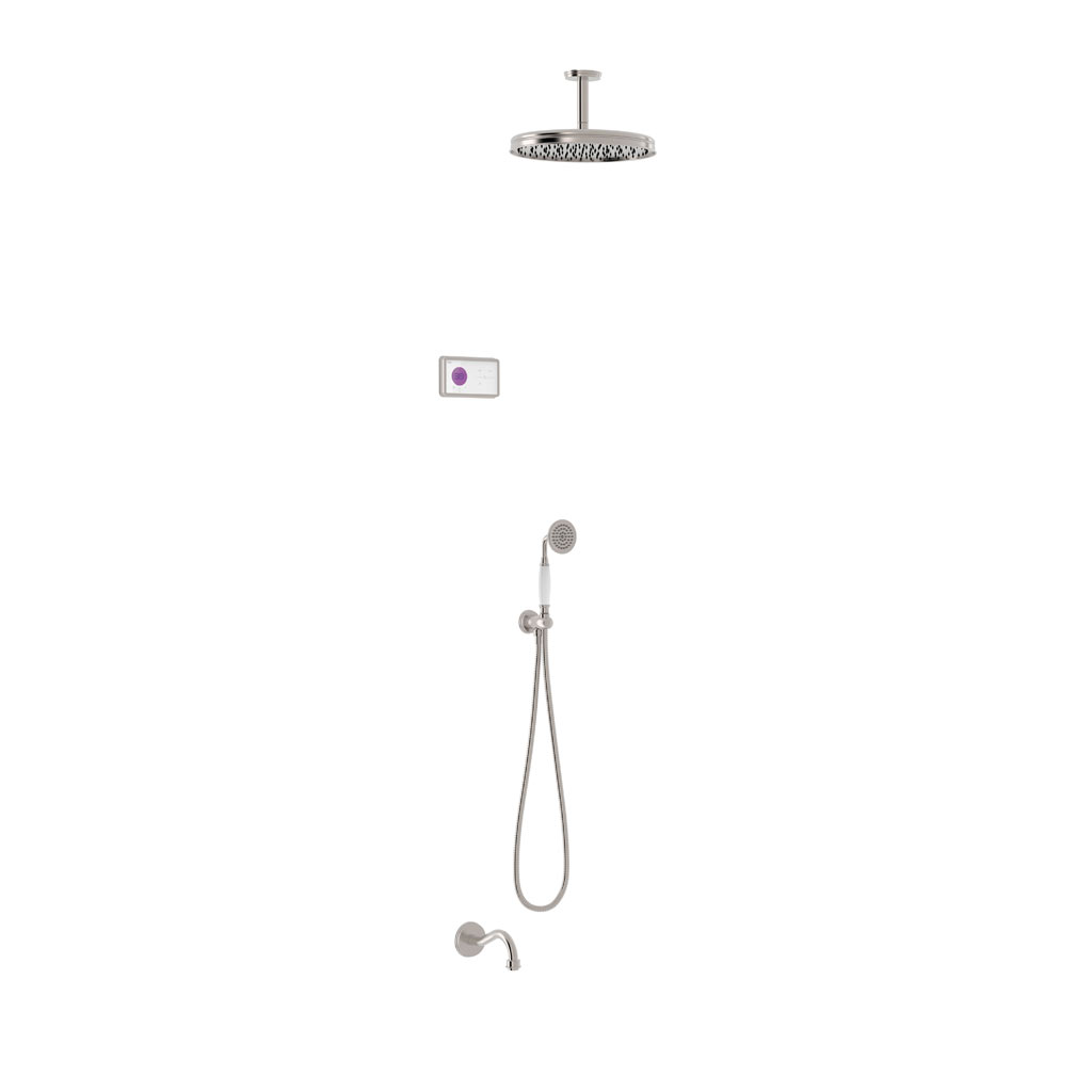 Tres Clasic falba süllyesztett, elektromos, termosztátos kád csaptelep, kézizuhannyal és esőztetővel steel 09226302ACTres Clasic falba süllyesztett, elektromos, termosztátos kád csaptelep, kézizuhannyal és esőztetővel steel 09226302AC