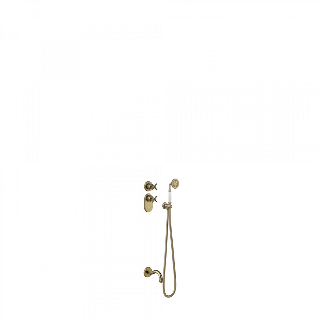 Tres Clasic falba süllyesztett, termosztátos kád csaptelep, kézizuhannyal  matt bronz 24235201LMTres Clasic falba süllyesztett, termosztátos kád csaptelep, kézizuhannyal matt bronz 24235201LM