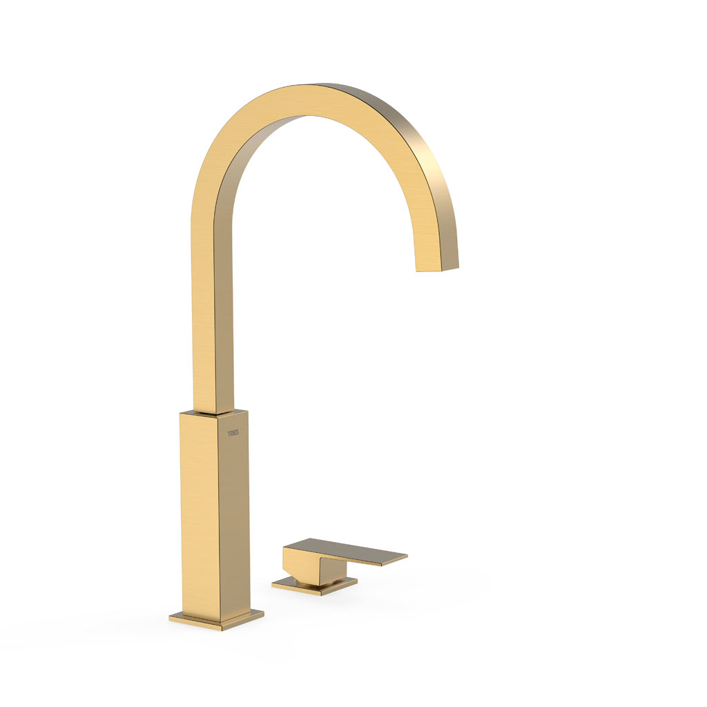 Tres Cuadro Exclusive magasított, peremre szerelhető, 2 üléses mosdó csaptelep, matt arany 00610504OM