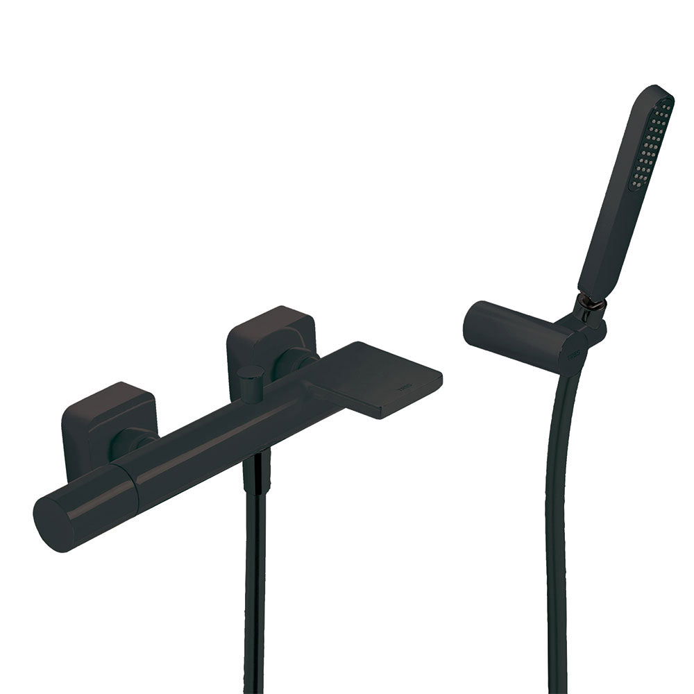 Tres Loft Colors fali kádtöltő és zuhany csaptelep, szatén tömlős kézizuhannyal, matt fekete 20017001NM