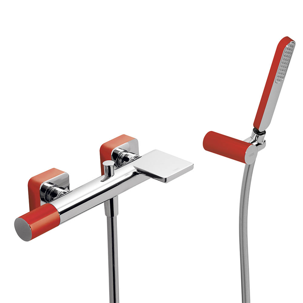 Tres Loft Colors fali kádtöltő és zuhany csaptelep, szatén tömlős kézizuhannyal red-chrome 20017001RO