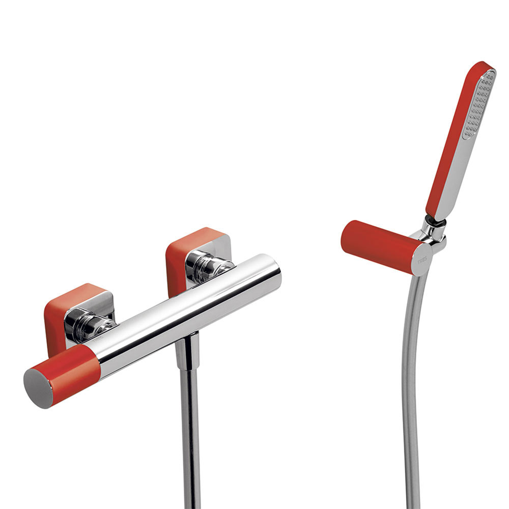 Tres Loft Colors fali zuhany csaptelep, szatén tömlős kézizuhannyal red-chrome 20016701RO