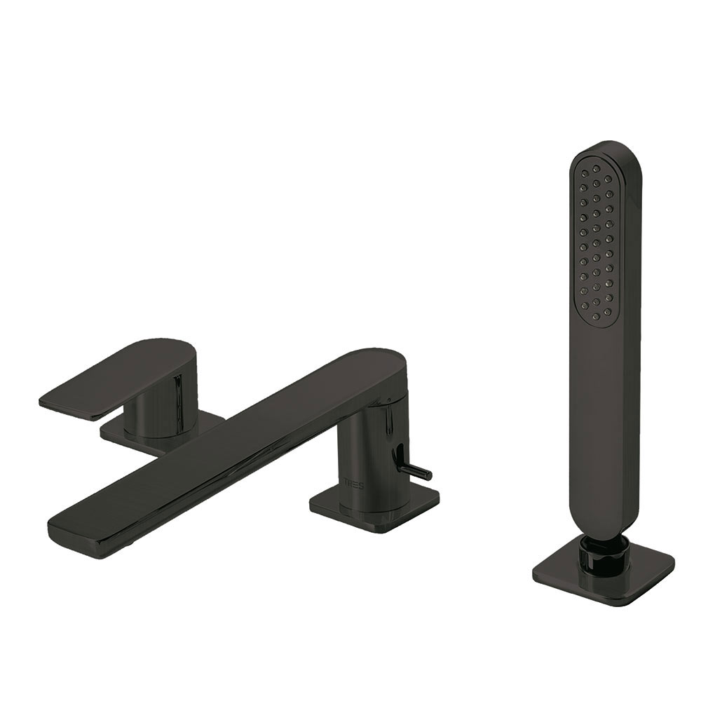 Tres Loft Colors peremre szerelhető kádtöltő és zuhany csaptelep, kihúzható zuhanyfejjel, matt fekete 20016201NM
