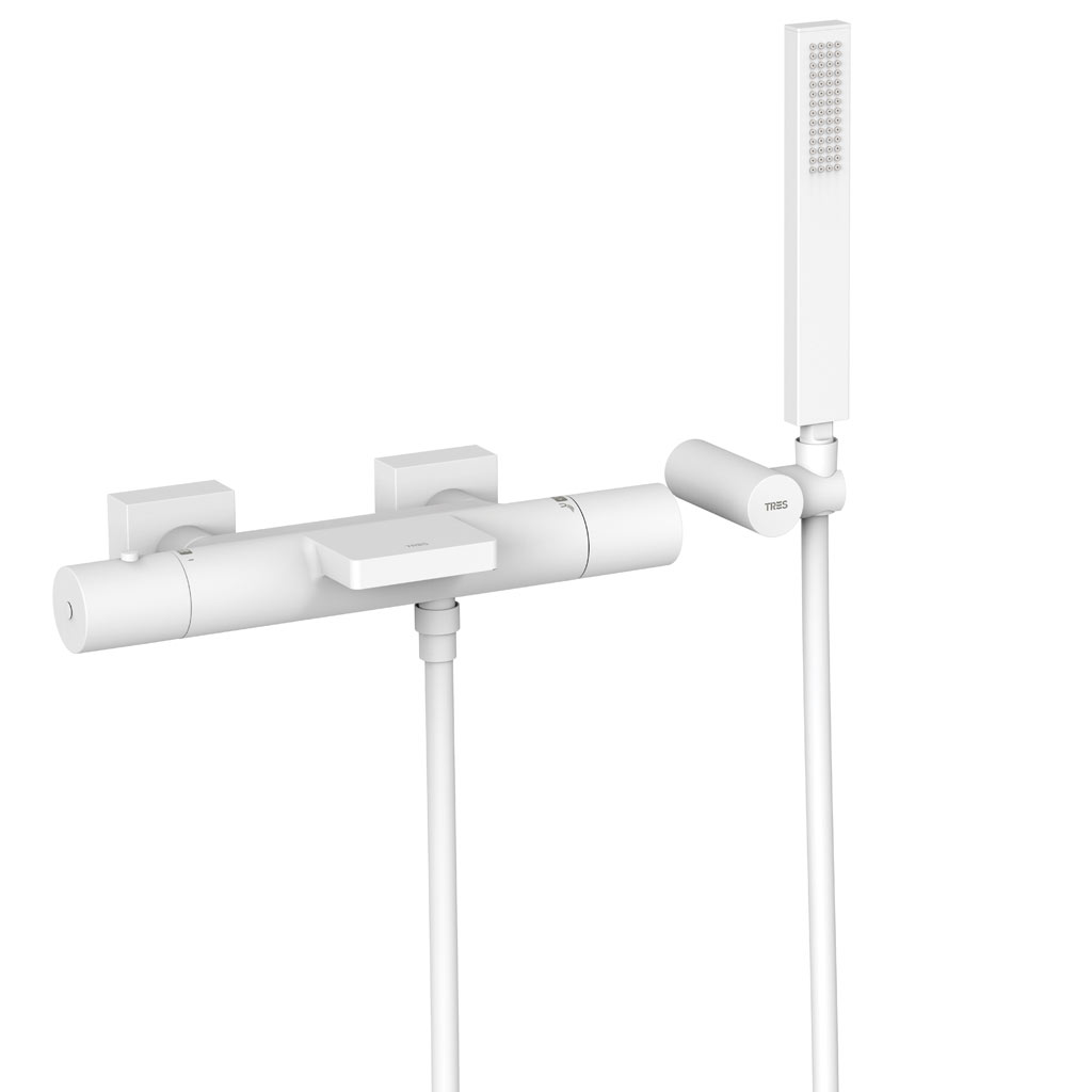 Tres Project-Tres fali termosztátos kád csaptelep, kézizuhannyal matt fehér 21117409BM