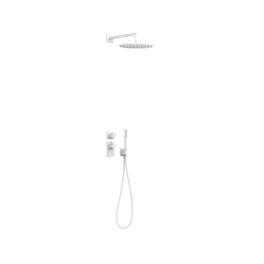 Tres Project-Tres fali termosztátos, kétutas zuhany csaptelep, kézizuhannyal és esőztetővel matt fehér 20635201BM