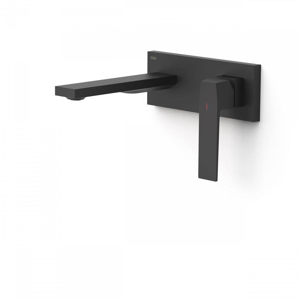 Tres Slim Exclusive falba süllyesztett egykaros mosdó csaptelep, 180 mm-es kiömlővel, leeresztővel, matt fekete  20230011NMTres Slim Exclusive falba süllyesztett egykaros mosdó csaptelep, 180 mm-es kiömlővel, leeresztővel, matt fekete 20230011NM
