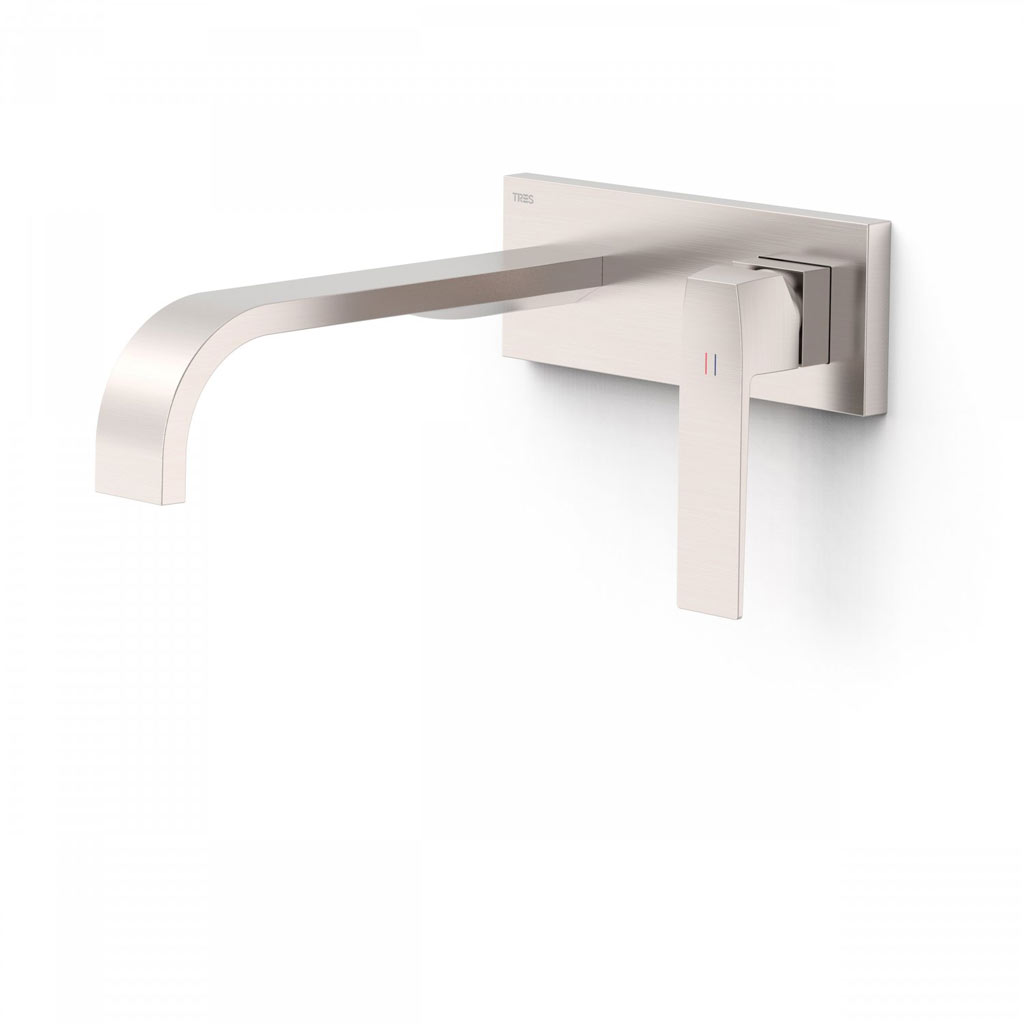 Tres Slim Exclusive falba süllyesztett egykaros mosdó csaptelep, 240 mm-es íves kiömlővel, leeresztővel, steel 20230014AC
