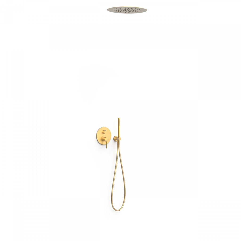 Tres Study Exclusive falba süllyesztett zuhany csaptelep szett, esőztetővel és kézizuhannyal, matt arany 26228005OM