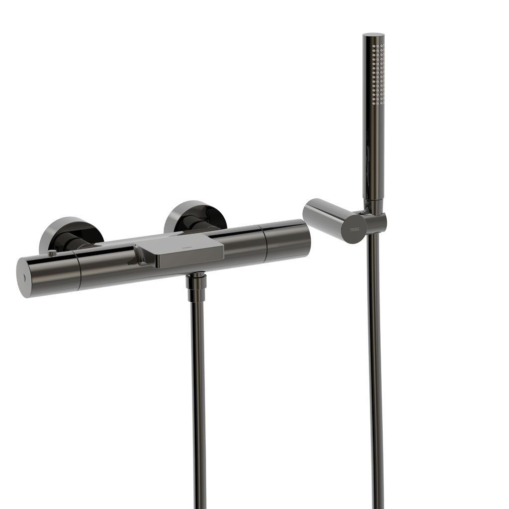 Tres Study Exclusive fali termosztátos zuhany csaptelep, cascade kifolyóval, kézizuhannyal, metallic black 26117209KM