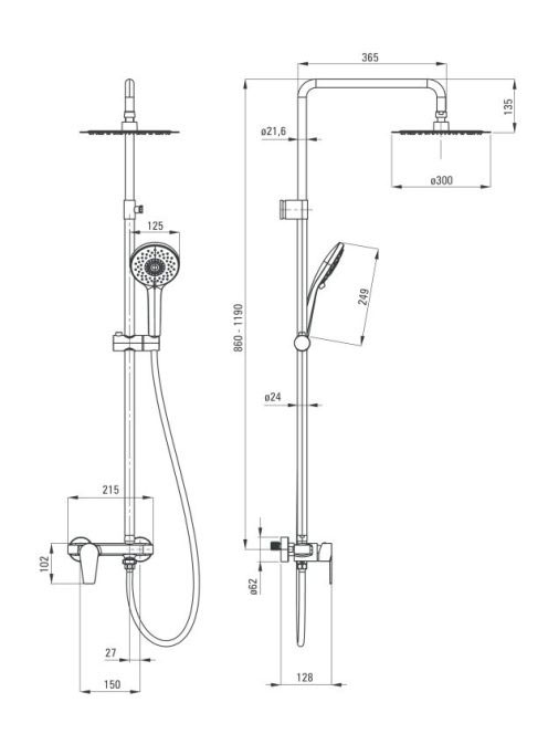 Deante Agawa falon kívüli zuhanyrendszer, króm NAC 01QG