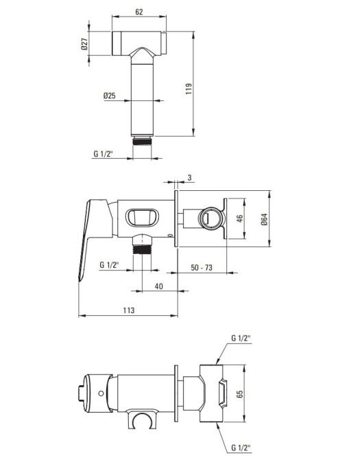 Deante Arnika falsík alatti bidé csaptelep bidé típusú kézizuhannyal, matt fekete BQA N34M