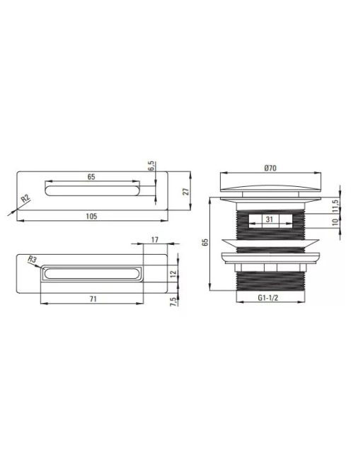 Deante Click-Clack kád leeresztő túlfolyóval, titánium KYY_D10B