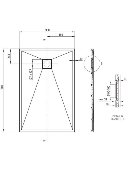 Deante Correo szögletes gránit zuhanytálca 140x90 cm, matt fekete KQR_N47B