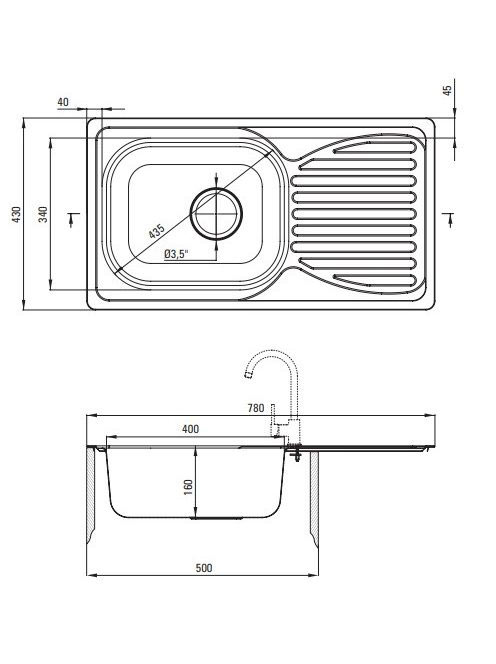 Deante Doppio 1 medencés acél mosogató csepegtetővel 78x43 cm, szatén ZEN 0113