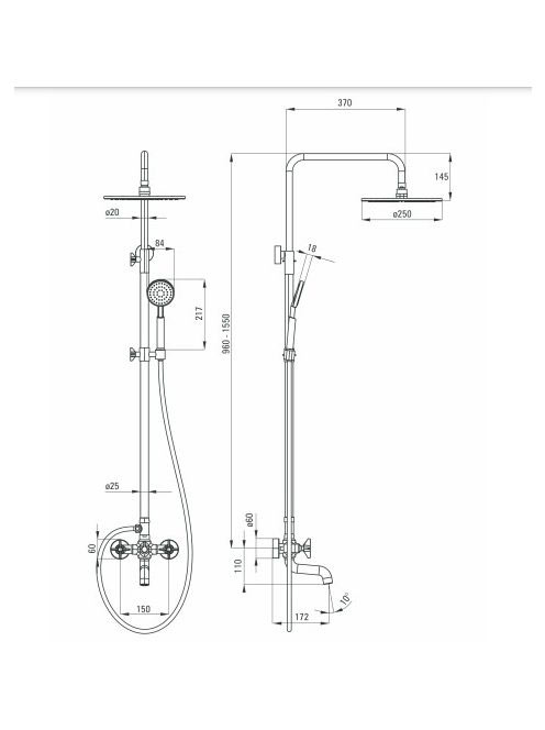 Deante Temisto zuhanyrendszer kádtöltő csapteleppel, króm NAC 01QT