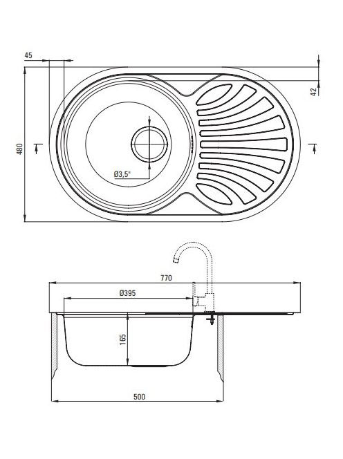 Deante Twist 1 medencés acél mosogató csepegtetővel 77x48 cm, dekor ZEU 311B