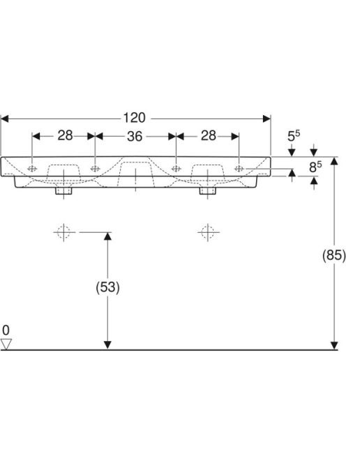 Geberit Smyle Square dupla mosdó 120x48 cm, csaplyuk nélkül, túlfolyóval 500.224.01.1 (500224011)