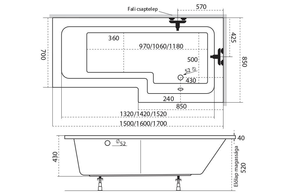 Méret: 160 x 70/85 cm