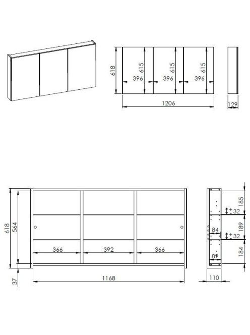 Arezzo design Basic tükrös szekrény 120 cm, 3 ajtóval AR-904656