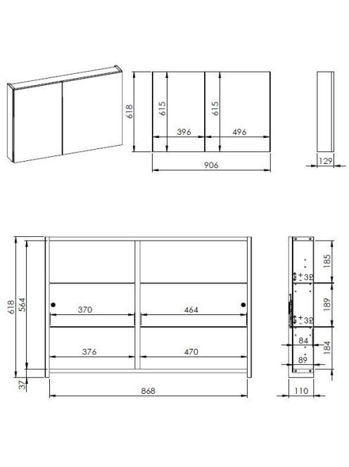 Arezzo design Basic tükrös szekrény 90 cm, 2 ajtóval AR-904662