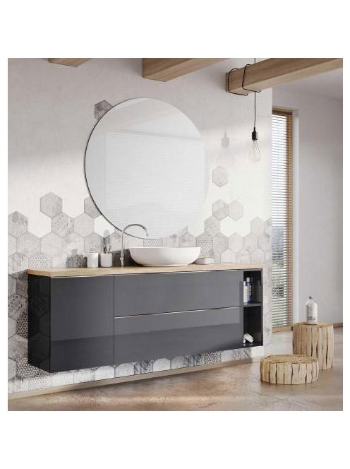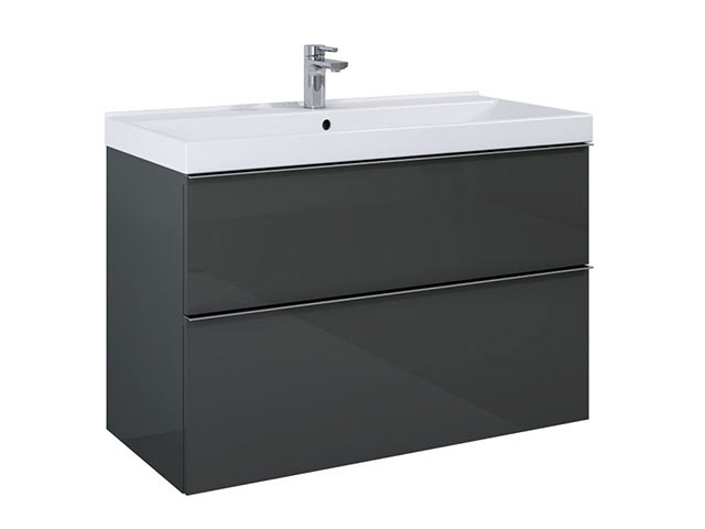 Arezzo design Monterey 100 alsószekrény 2 fiókkal és szifonkivágással, magasfényű antracit AR-167086