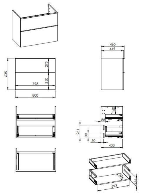 Arezzo design Monterey 80 alsószekrény szifonkivágás nélkül, 2 fiókkal, matt fekete AR-168111
