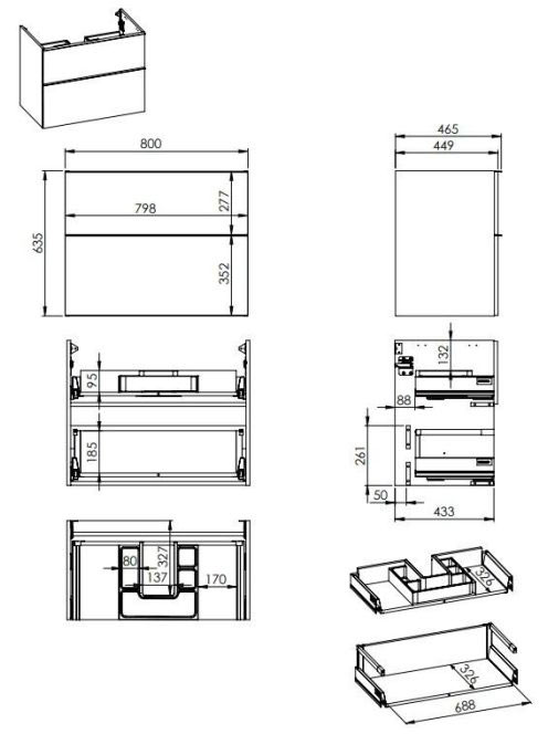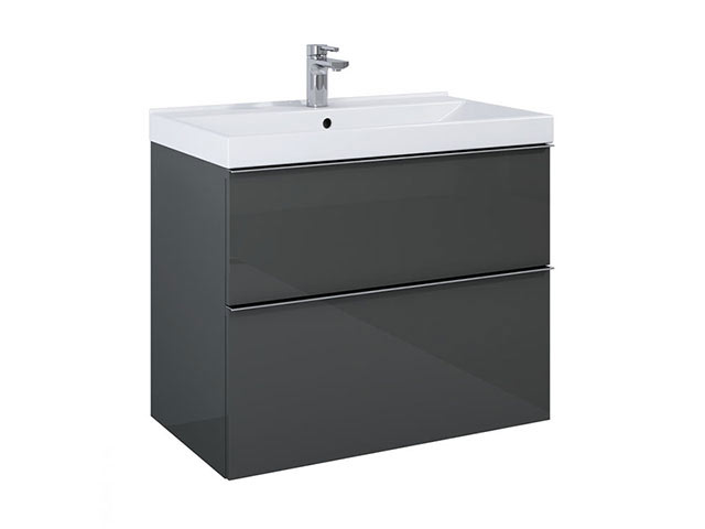 Arezzo design Monterey 80 alsószekrény szifonkivágással, 2 fiókkal, fényes antracit AR-167082
