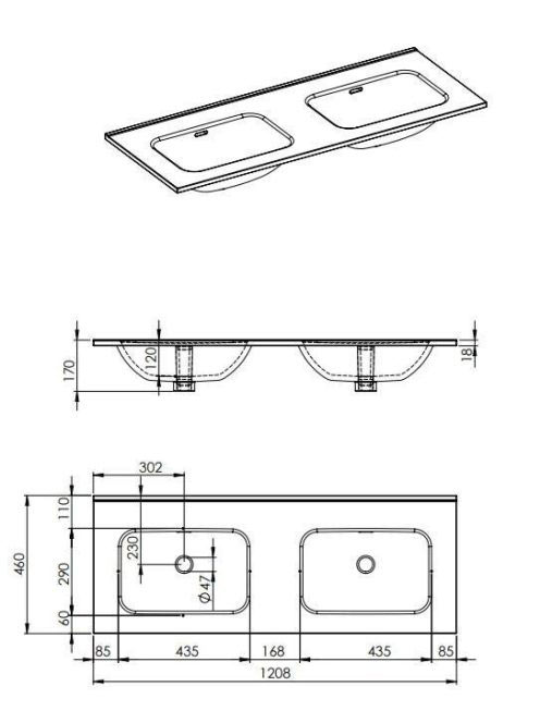 Arezzo design Skappa dupla mosdó 120 cm, csaplyuk nélkül AR-146034